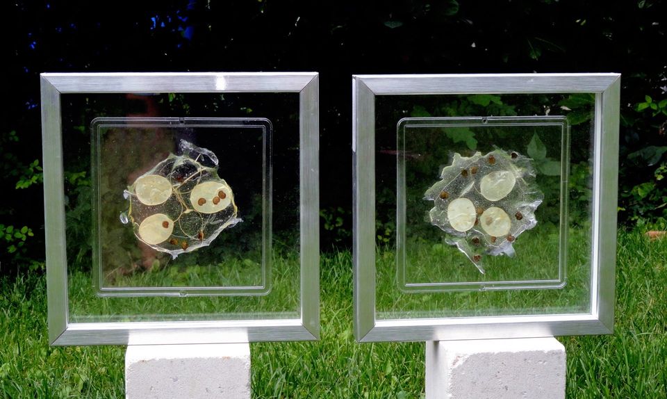 Silberblatt Acrylharz, Silberblatt, Rahmen Alu eloxiert je 25 x 25 cm