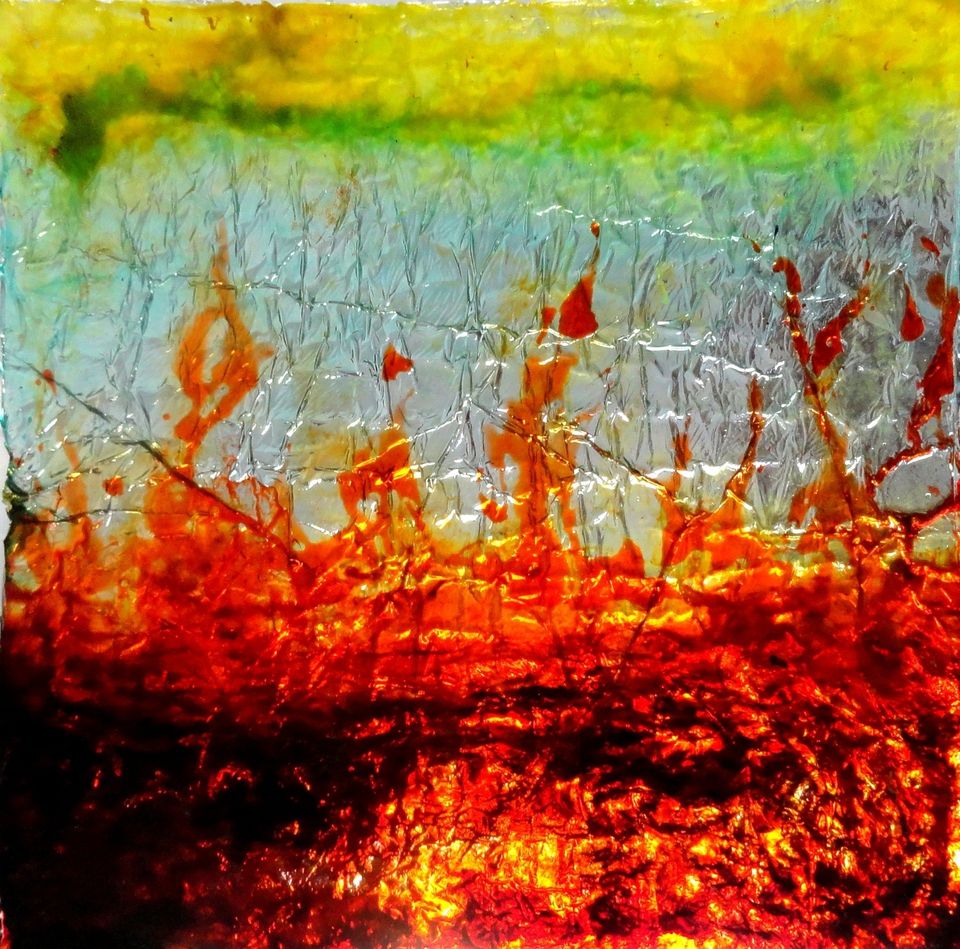Über Nacht Acrylharz und Glas 45 x 45 cm