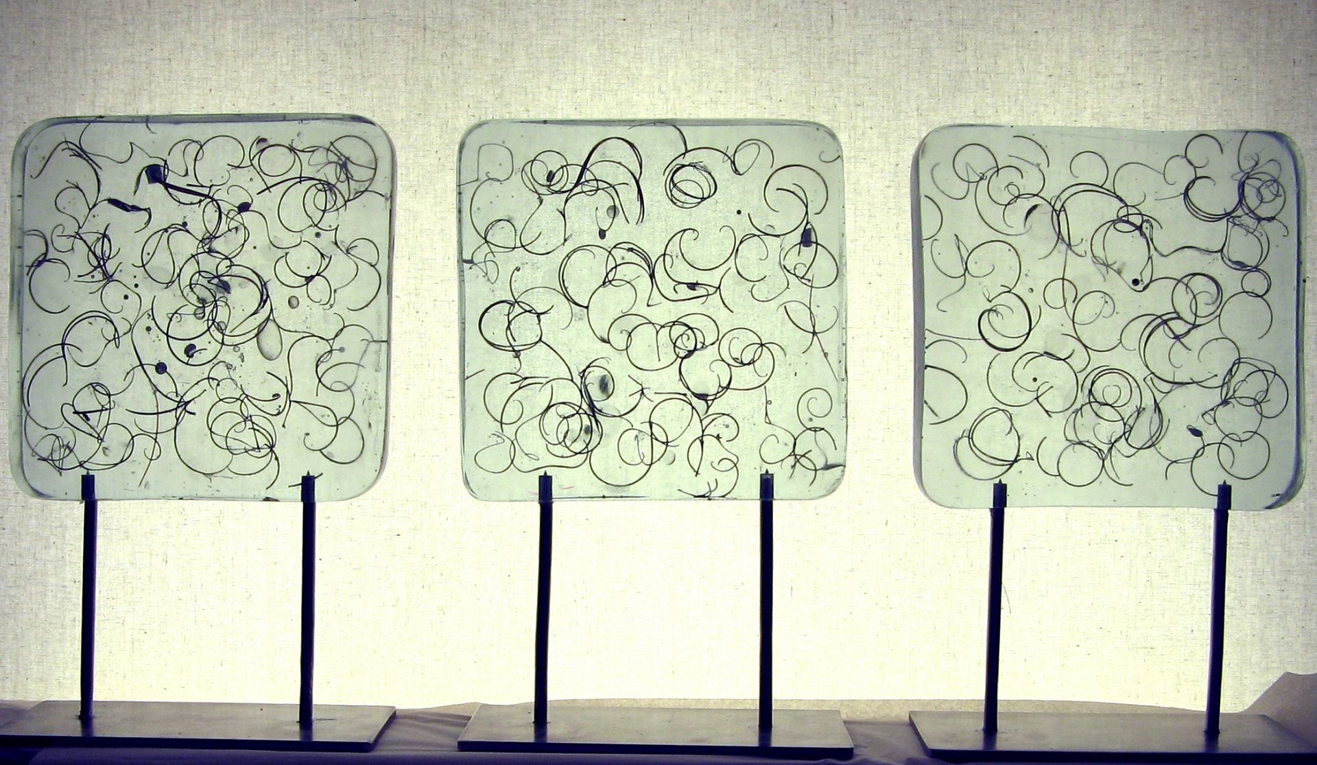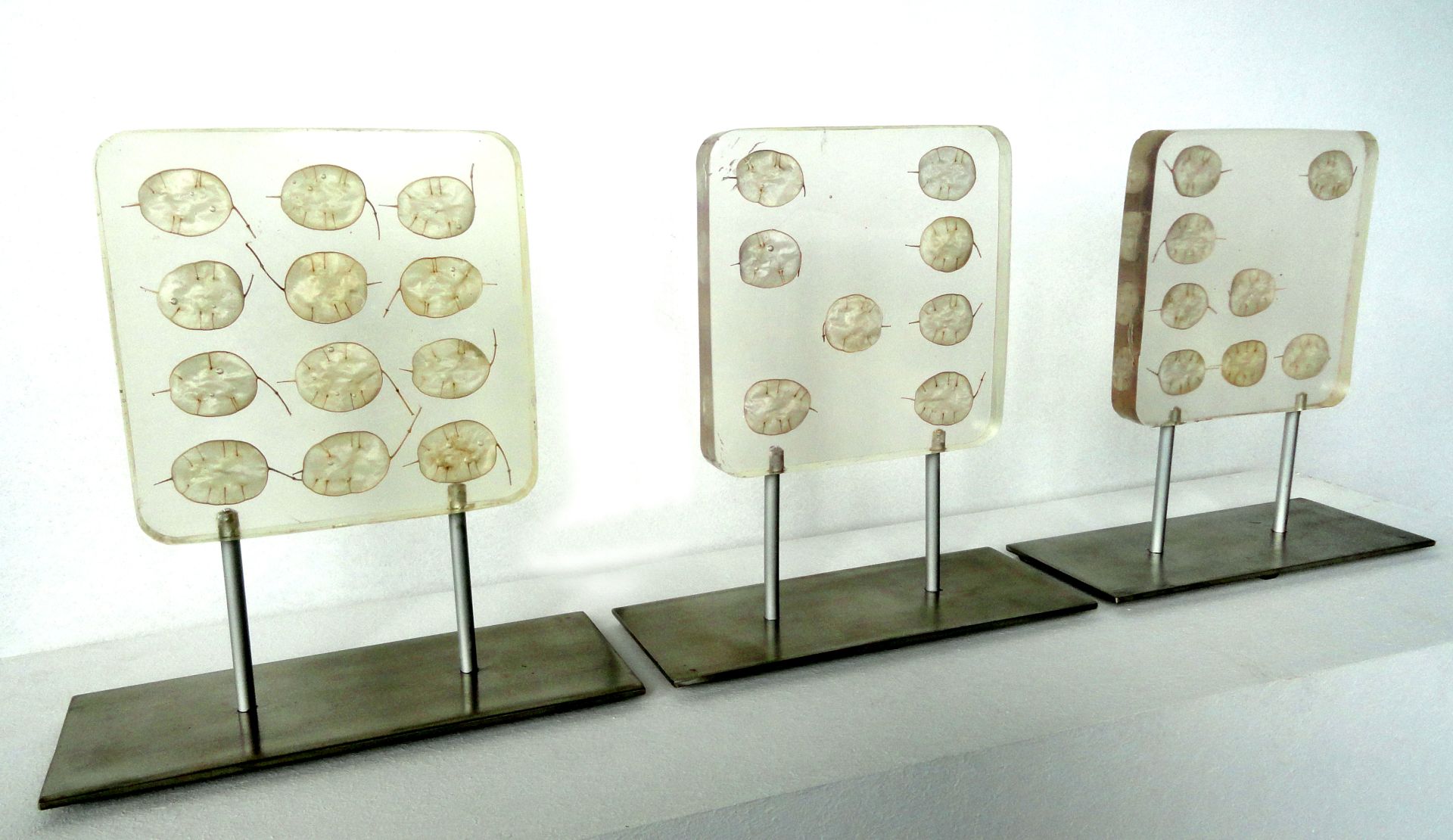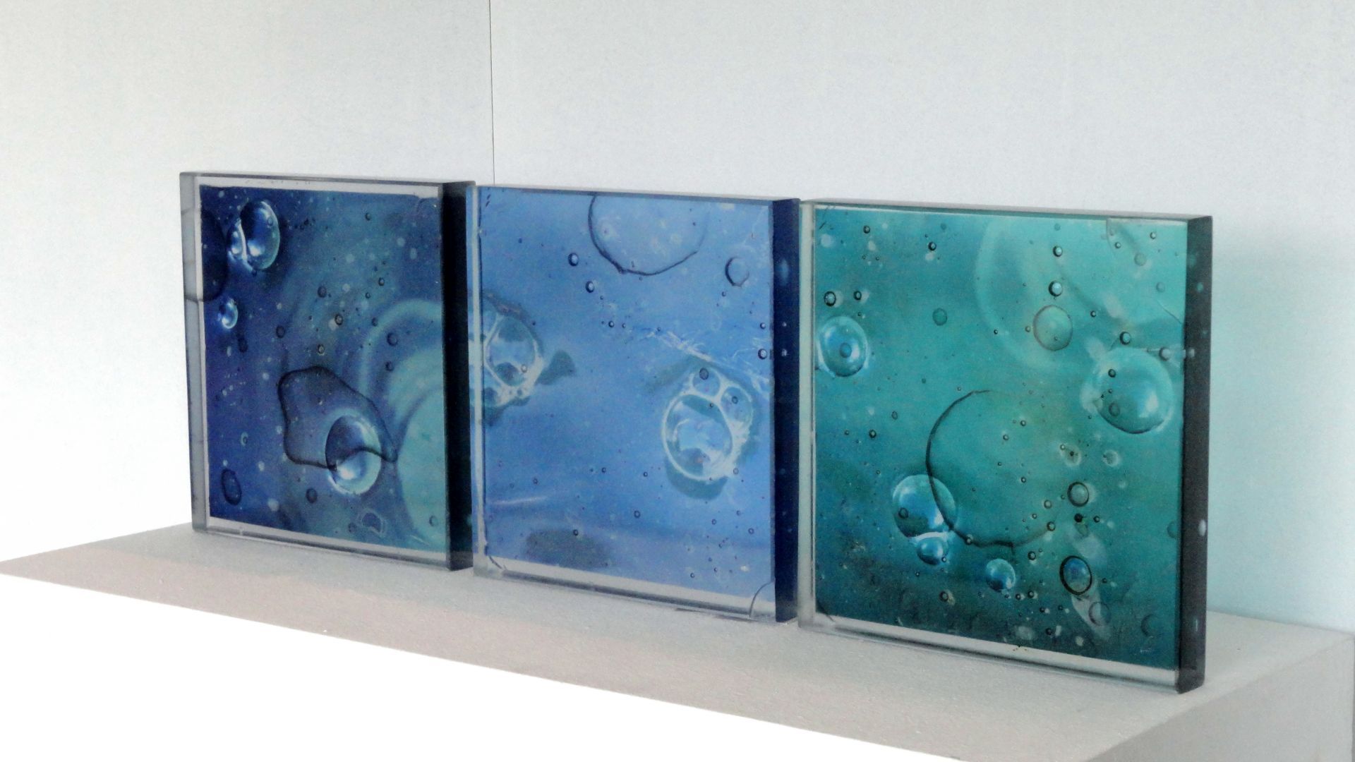 ohne Titel Acrylharz in 3 Schichten, geschliffen, jap. Seidenpapier je 20 x 20 x 3 cm
