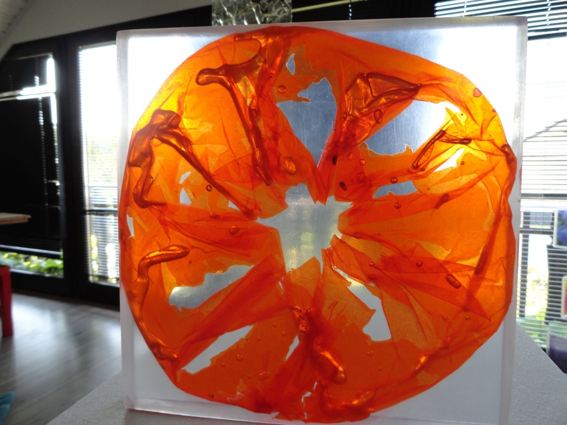 Abtauchen Acrylharz in 3 Schichten, geschliffen je 20 x 20 x 3 cm