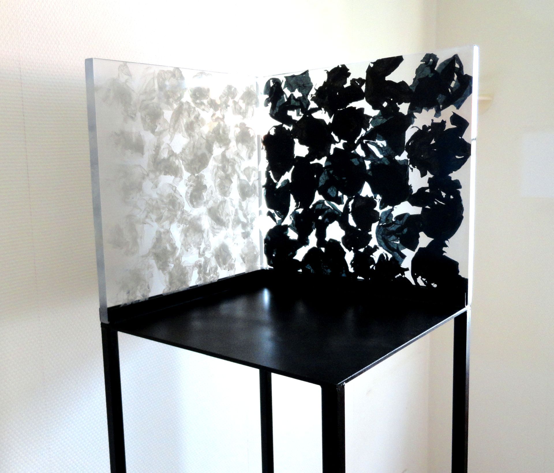 Perspektive Acrylharz, Seidenpapier, Stahl 42 x 42 x 160 cm