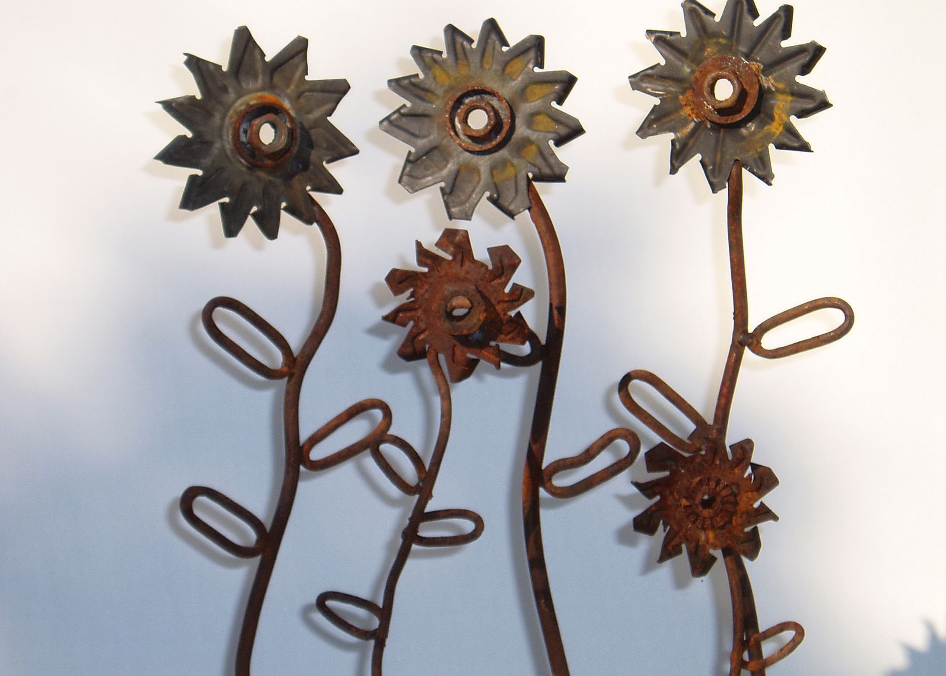 Für meine Stahlskulpturen verwende ich landwirtschaftlich und industriell lang benutzte Teile aus Stahl. Dabei ist mir wichtig den alten Formen eine neue veränderte Bedeutung und Ästhetik zu verleihen.