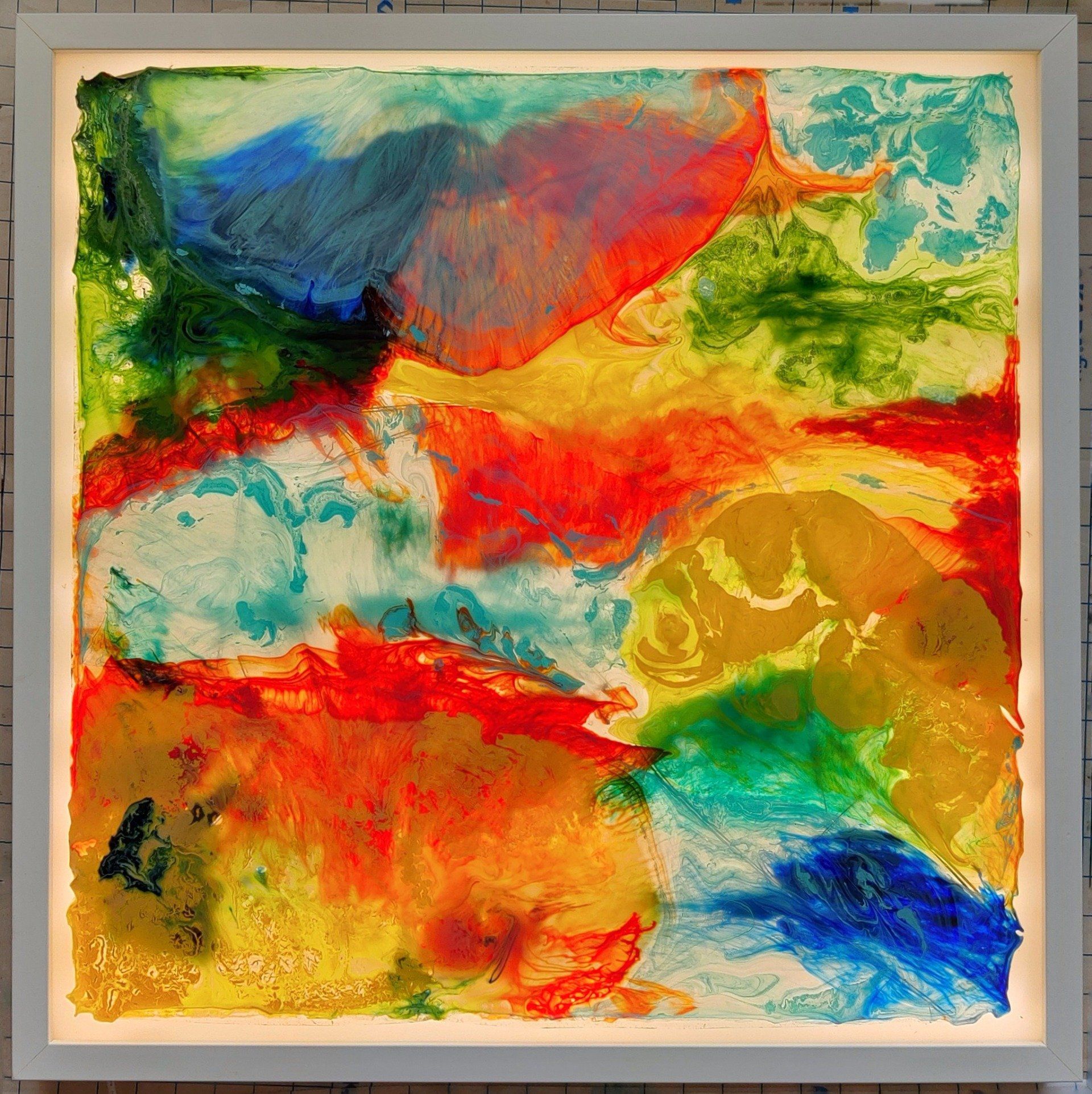 Acrylharz und weißes Acrylglas 45 x 45 cm