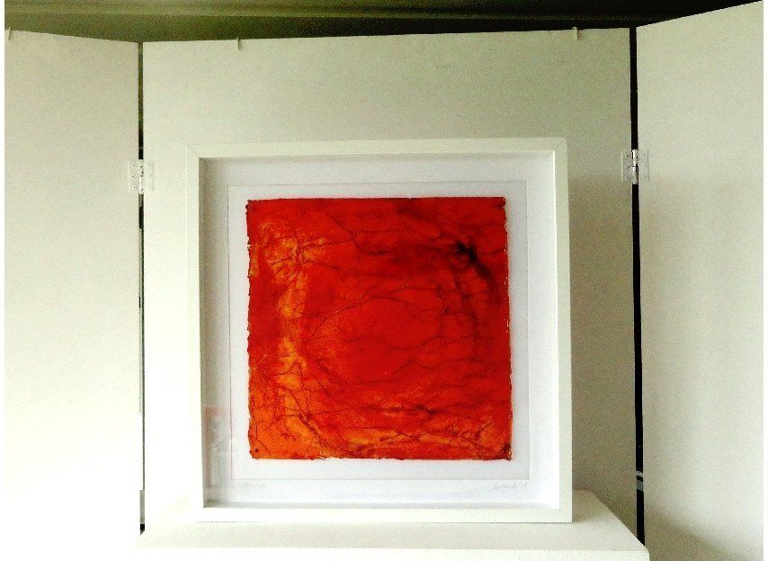 Rote Blume Acrylharz, Farbpigmente 40 x 40 cm